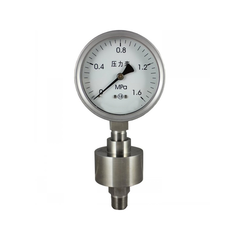 隔膜壓力表其溫度的影響與密封液膨脹系數隔膜片剛度及受壓部位的溫度有關。儀表在使用溫度偏離20±5℃時,受溫度影響的示值***大變化率剛性不大于0.1%℃,柔性(遠接式)不大于0.1±0.025L%℃(L-傳壓導管長度m)隔膜式壓力表在制做時應注意根據不同的使用環境,選擇相應的密封工作液。